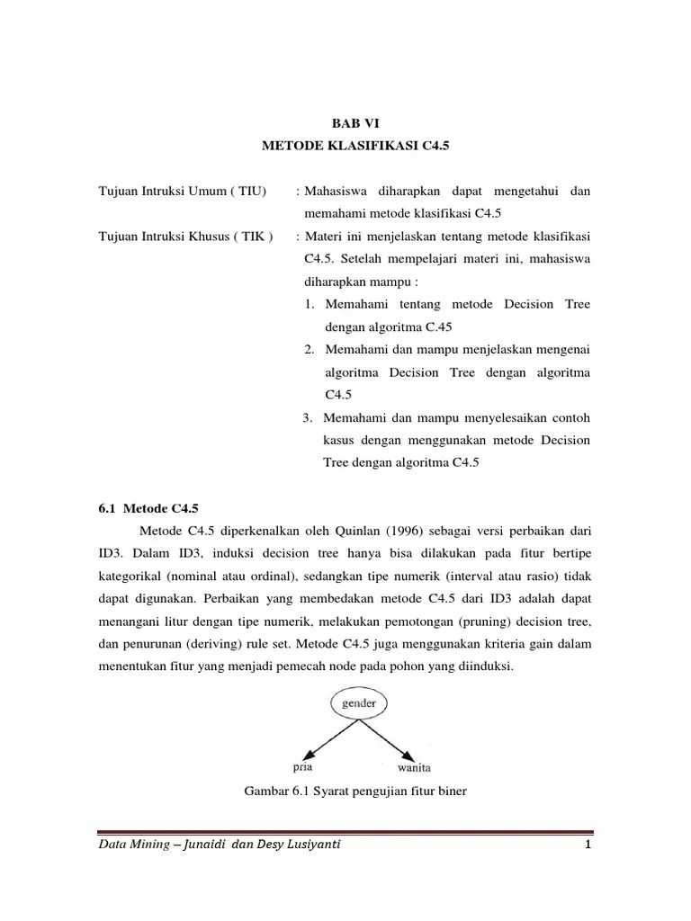 Dengan algoritma c4.5, akan didapatkan sebuah pohon keputusan yang mudah dipahami. Jumlah partisi s • pi : Penerapan algoritma c4.5 dalam pemilihan konsentrasi program studi (studi kasus di stmik widya pratama pekalongan) Penjelasan mengenai algoritma c4.5 berikut ini disertakan contoh kasus yang . 2.5 contoh kasus yang diselesaikan dengan algoritma c4.5.