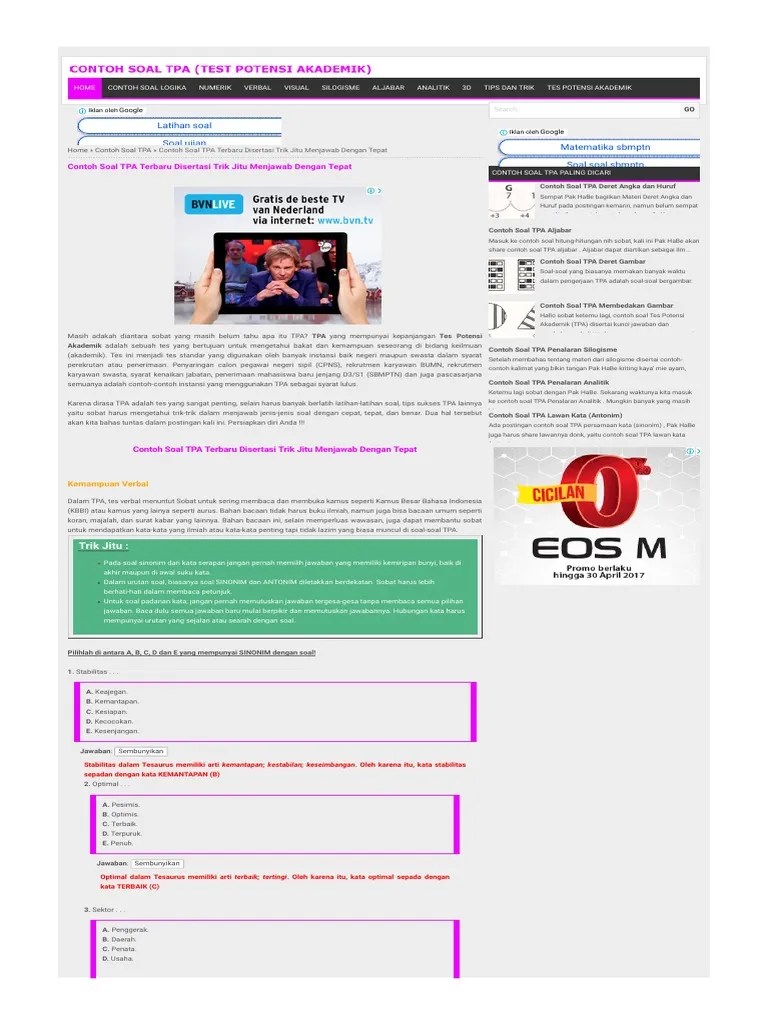 Latihan Soal Tpa Web : Contoh Soal Tpa Dan Jawabannya Latihan Pretest Penalaran Ppg - 10 paket materi dan latihan soal tpa verbal dengan sub materi: